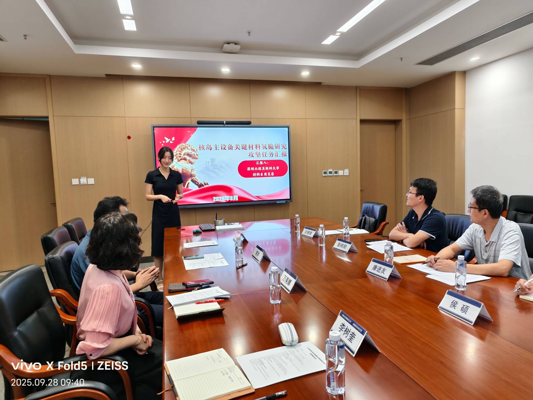 在“党员攻坚”环节,深北莫周笑靥老师作为双方合作项目负责人介绍了“钛合金氢脆行为与机理”研究项目的技术难点与阶段性成果,并提出了下一步合作中面临的核心技术需求。随后,与会人员共同参观了深北莫材料科学系实验室及中广核研究院材料实验室,实地了解双方在材料表征、焊接技术、核电装备研发等方面的科研设施与最新成果。在联合实验室共建讨论环节,双方就平台共享、项目共担、人才共育等合作机制展开务实交流,初步形成了“资源共享、协同创新、共同发展”的合作框架。