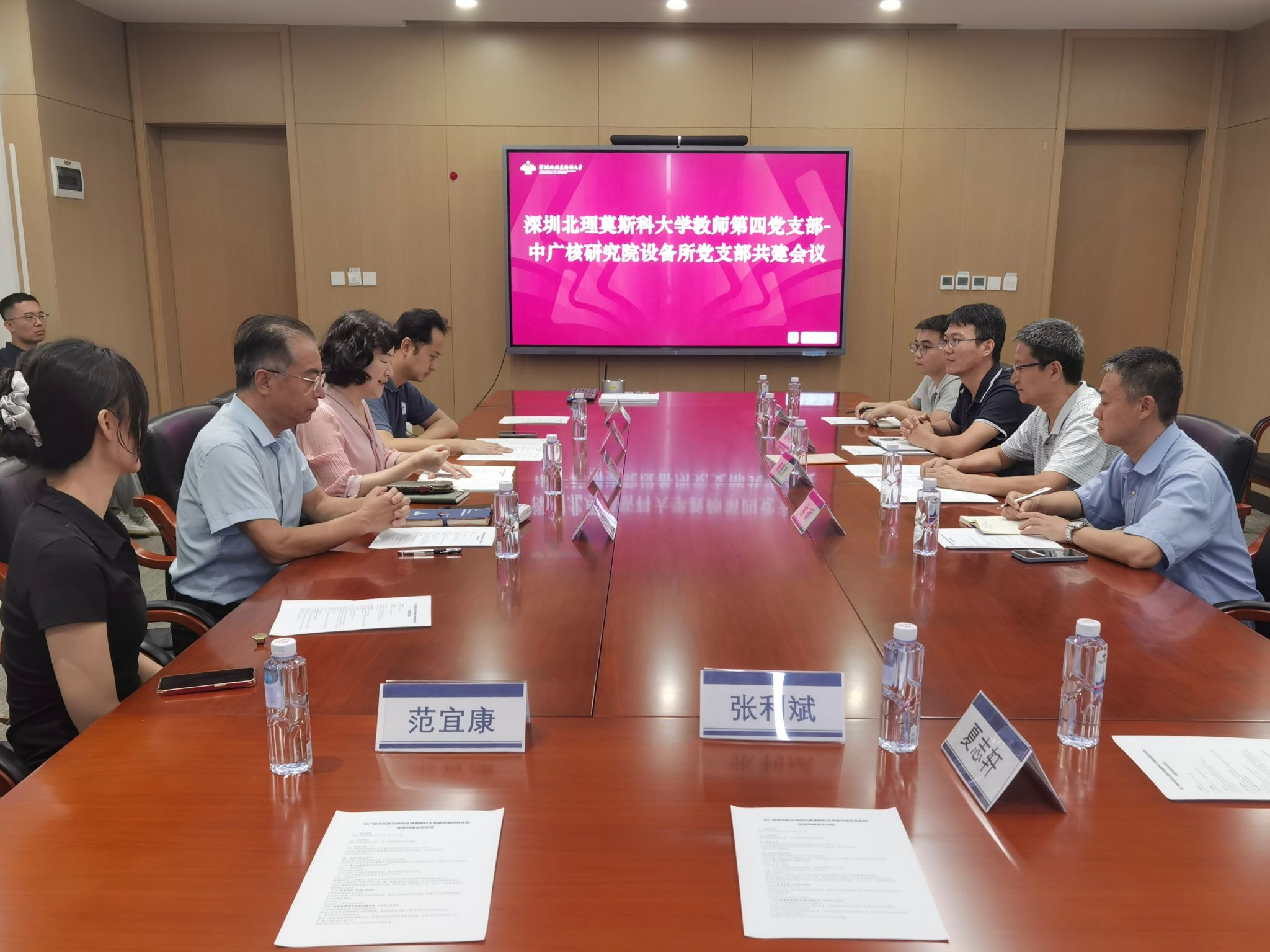 2025年9月28日上午,深圳北理莫斯科大学(以下简称深北莫)教师第四党支部与中广核研究院有限公司设备所党总支共建活动在深北莫顺利举行,深北莫校长助理万美娜、材料科学系主任李树奎、教师第四党支部书记常帅,广核研究院设备所党总支副书记康进友、材料焊接室主任侯硕等双方党员代表、业务骨干共二十余人参加活动。本次活动以“党建引领聚合力 科技攻坚促发展”为主题,旨在推动党建与业务深度融合,促进科技创新合作,构建资源共享、优势互补的长效机制。