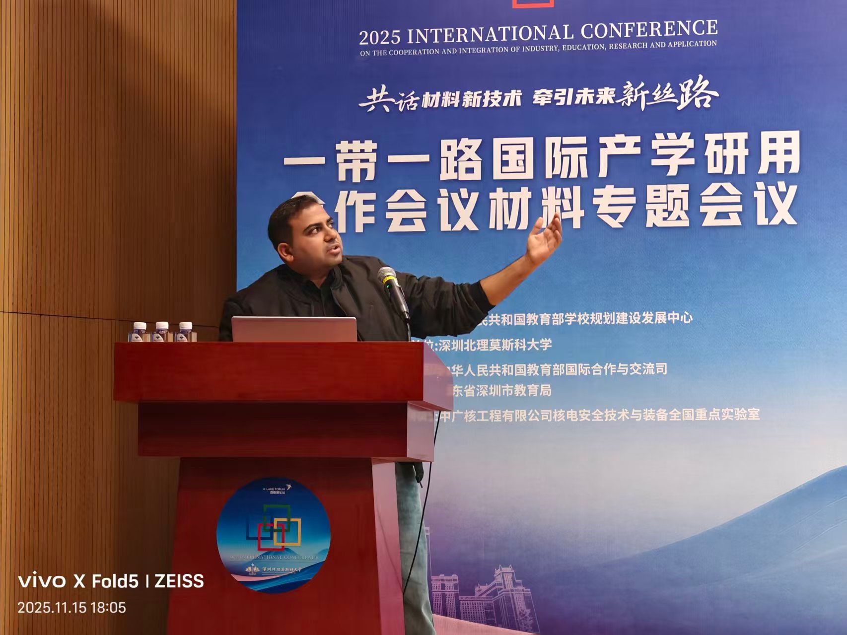 11月14日-15日,2025“一带一路”国际产学研用合作会议材料专题会议在深圳圆满完成全部议程,顺利落幕。会议根据中华人民共和国教育部国际合作与交流司的指示,由深圳北理莫斯科大学主办,深圳北理莫斯科大学材料科学系、绿色储能材料广东省高校重点实验室、中俄纳米结构光电功能材料与器件重点实验室联合承办,中广核工程有限公司核电安全技术与装备全国重点实验室协办。会议分阶段先后在深圳国际会展中心(宝安)高交会现场和深圳北理莫斯科大学校内举办,汇聚海内外材料领域专家学者、企业代表及高校师生100余人,以“科技赋能产业融合,共创未来”为核心,围绕前沿技术突破与产学研用深度融合展开全方位交流,为“一带一路”科技协同发展注入新活力。