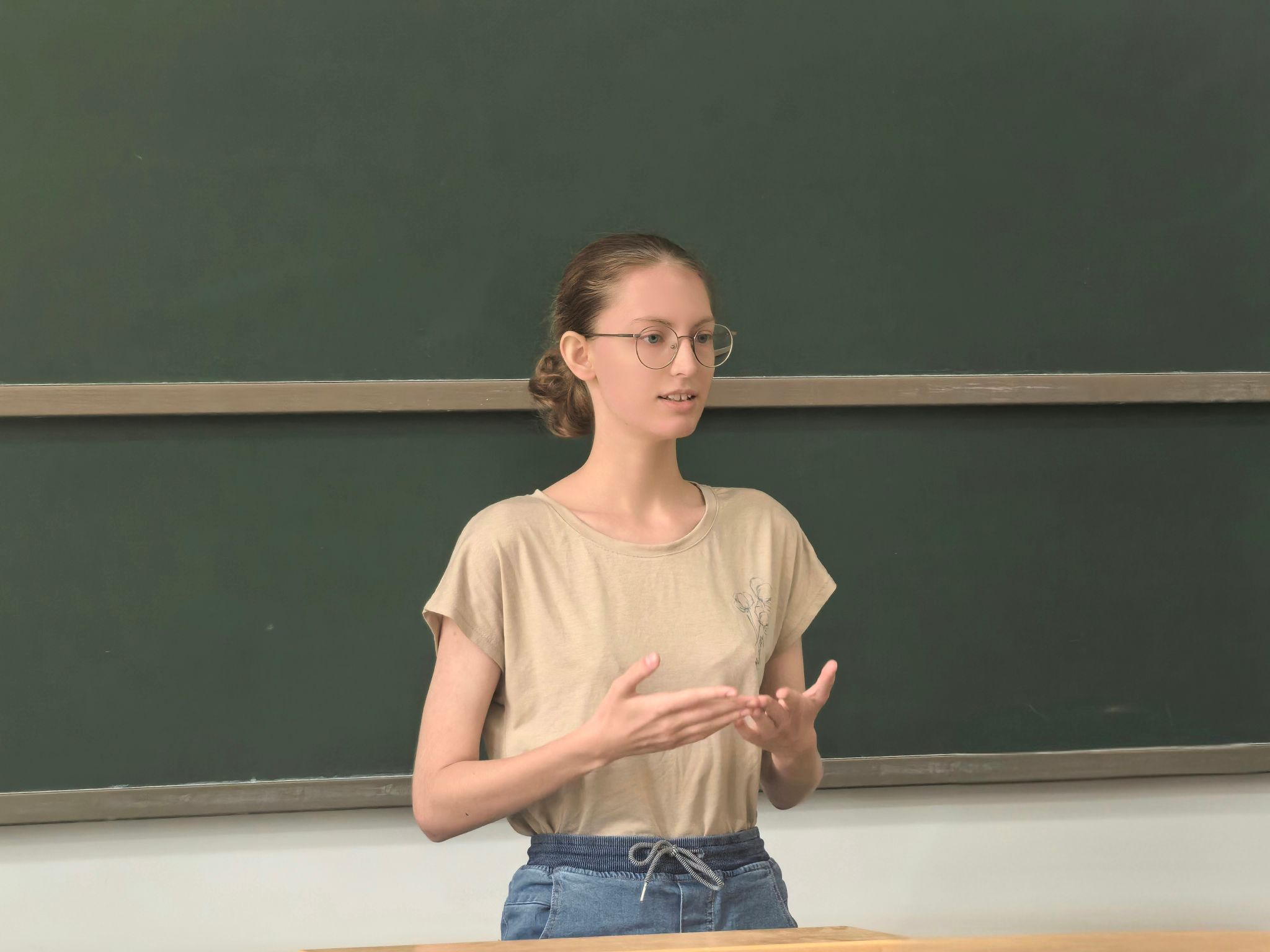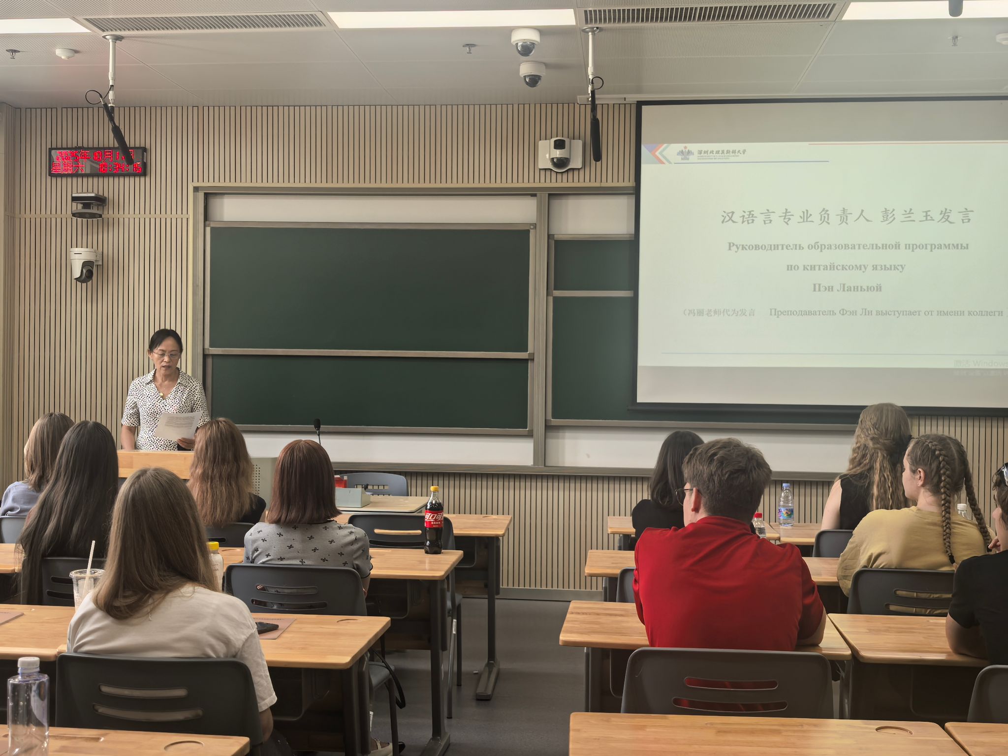 见面会最后环节是优秀学生代表经验分享。汉语言专业2023级NIKIFOROVA ALTANA(阿尔塔娜)和2024级MANCHUKOVSKAIA ANASTASIIA(星星),结合自身学习与生活经历,倾囊相授。阿尔塔娜分享了自己从一开始完全不会中文到如今能够流利进行表达的心路历程。她建议大家要重视每一次课程,结交中国朋友,积极参与实践活动,旅游和看中文视频都是有效提高汉语水平的途径。星星则告诉学弟学妹们无论以前是否学过汉语,只要认真刻苦学习,一年级结束后都能通过HSK4级。她还鼓励大家报名语言角活动,这是一个结交中国同学,互相学习的好机会。她们真实的讲述和真诚的鼓励,引起了在场新生的强烈共鸣。