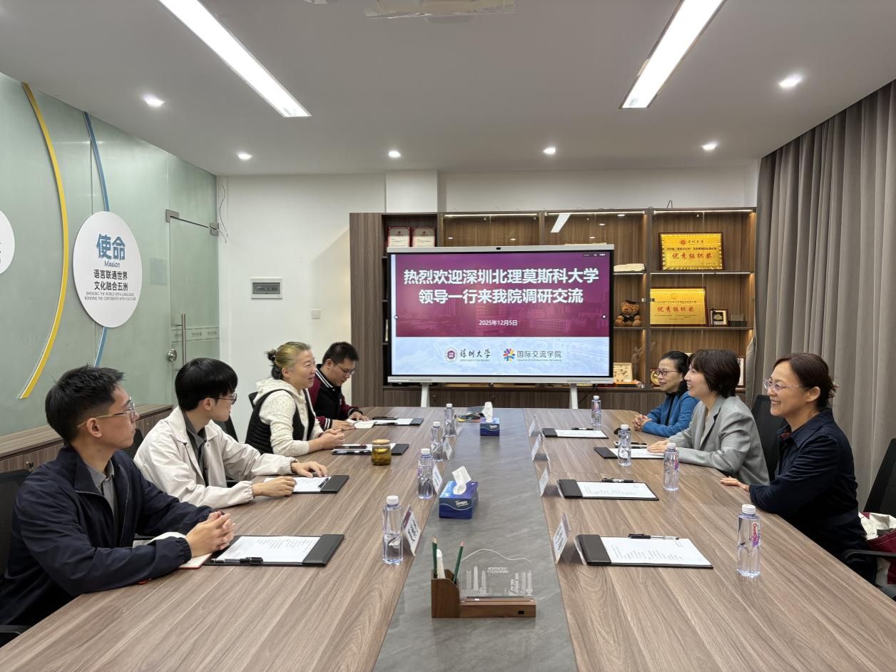 2025年12月5日上午,为进一步加强校际交流与合作,提升国际学生管理与人才培养质量,深圳北理莫斯科大学汉语中心主任王玮一行前往深圳大学国际交流学院(朝夕楼)开展深度调研与座谈交流。
