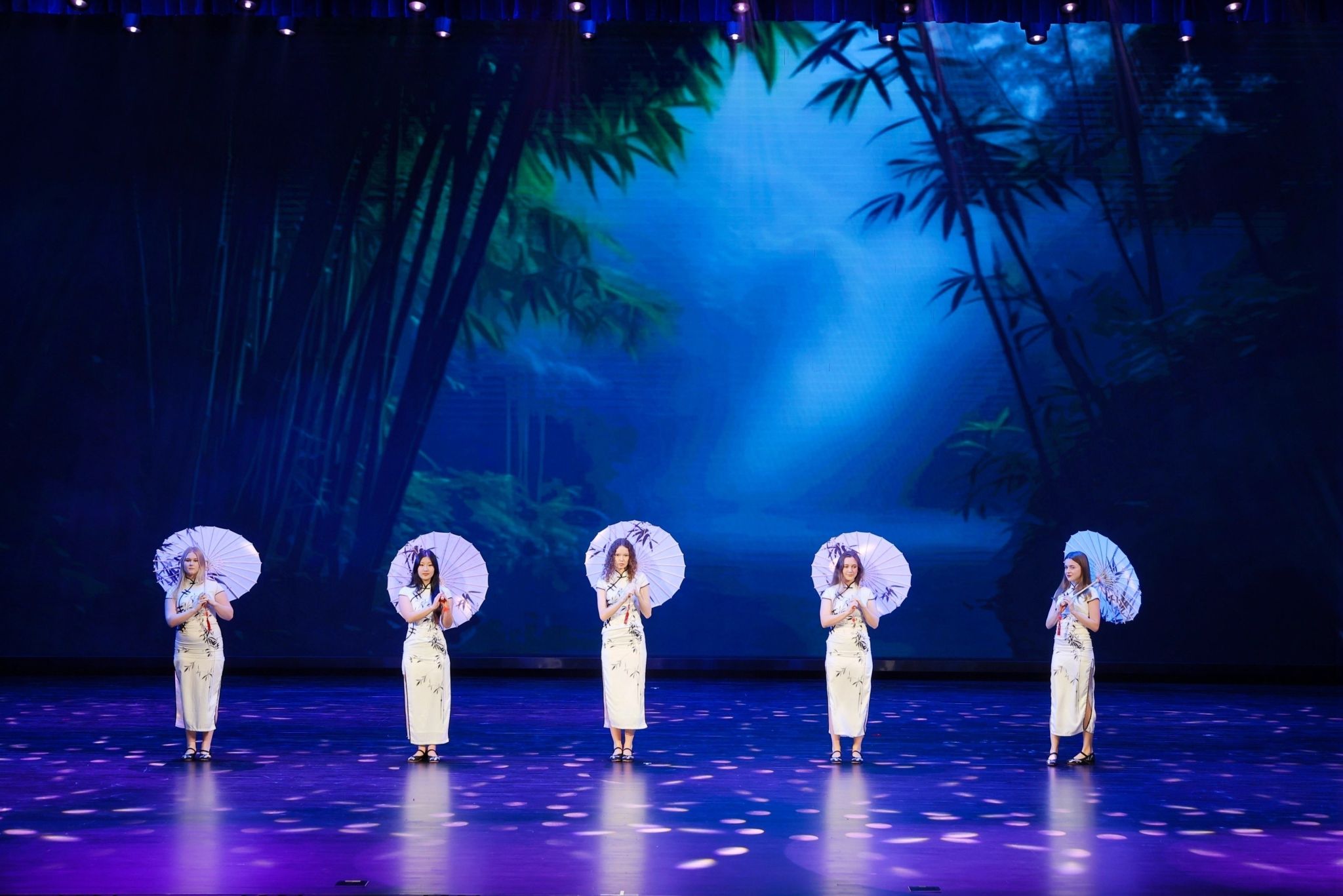 12月30日下午,广东省教育厅主办的“留学中国·学在广东”2025广东省来粤留学工作成果展示活动在华南理工大学广州国际校区隆重启幕。在艺术展演环节“探索·校园足迹”篇章中,由深圳北理莫斯科大学国际学术交流合作部选送、汉语中心师生编创的诗朗诵+舞蹈节目“你是人间的四月天”成功上演。五位俄罗斯籍同学带来林徽因的经典诗词“你是人间的四月天”,舞者身着白色旗袍,手持油纸伞,随着余筝的《油纸伞》翩然起舞。伞影旋转,宛如水面荡起的涟漪,舞姿轻盈流畅,尽显东方美学的优雅与精致。舞蹈的优雅与和谐展现了中华传统文化的丰富内涵与细腻之美。这是一场听觉、视觉与情感的盛宴,让观众仿佛置身古典中国的意境之中。