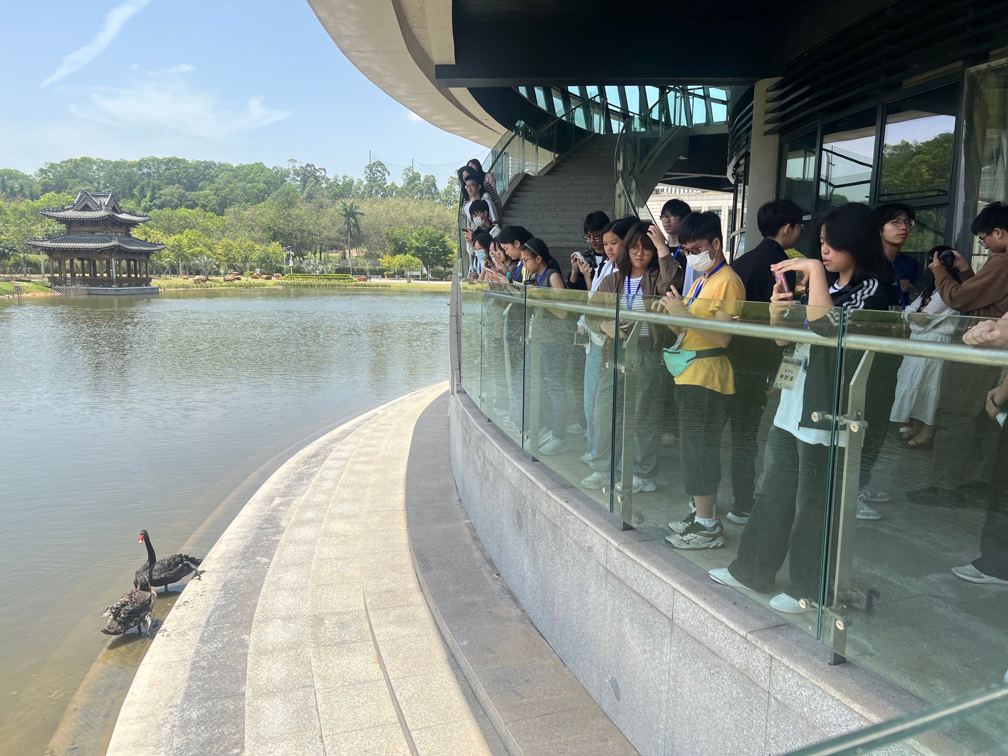 参访团在深北莫学生讲解员的带领下,深入了解了学校的建校历史、办学理念及国际化特色。随后,师生们参观了校园教学区域、食堂、天鹅湖及三匹马标志性雕塑,实地感受深北莫的教学设施与人文氛围。活动最后,深北莫马克思主义学院教师杨彦哲为参访团详细介绍了学校针对港澳台学生的招生政策、优势专业以及培养方向,并鼓励香港青少年积极把握粤港澳大湾区的发展机遇。