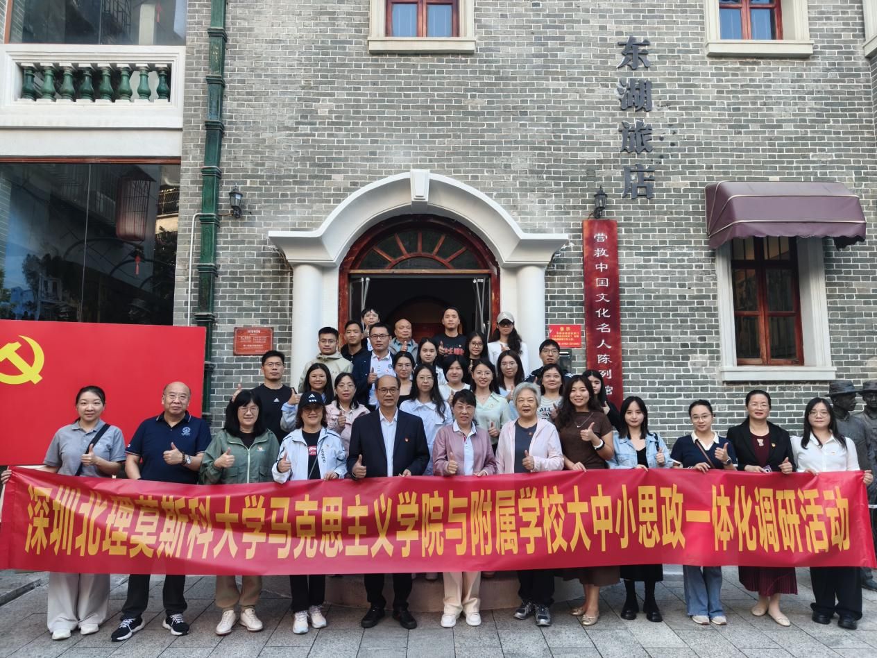 本次活动旨在以“行走的思政课”践行习近平总书记“八个相统一”的要求,推进大中小学思政课教师一体化培养,建设一支“政治要强、情怀要深、思维要新、视野要广、自律要严、人格要正”的高素质教师队伍。活动由马克思主义学院负责人郭正林、基础教育集团副总校长兼龙岗园山学校党支部书记、校长冯景华,基础教育集团党支部书记焦玉萍带队,三校共34名教师参与,赴惠州等多个红色教育基地开展沉浸式思政教学调研。