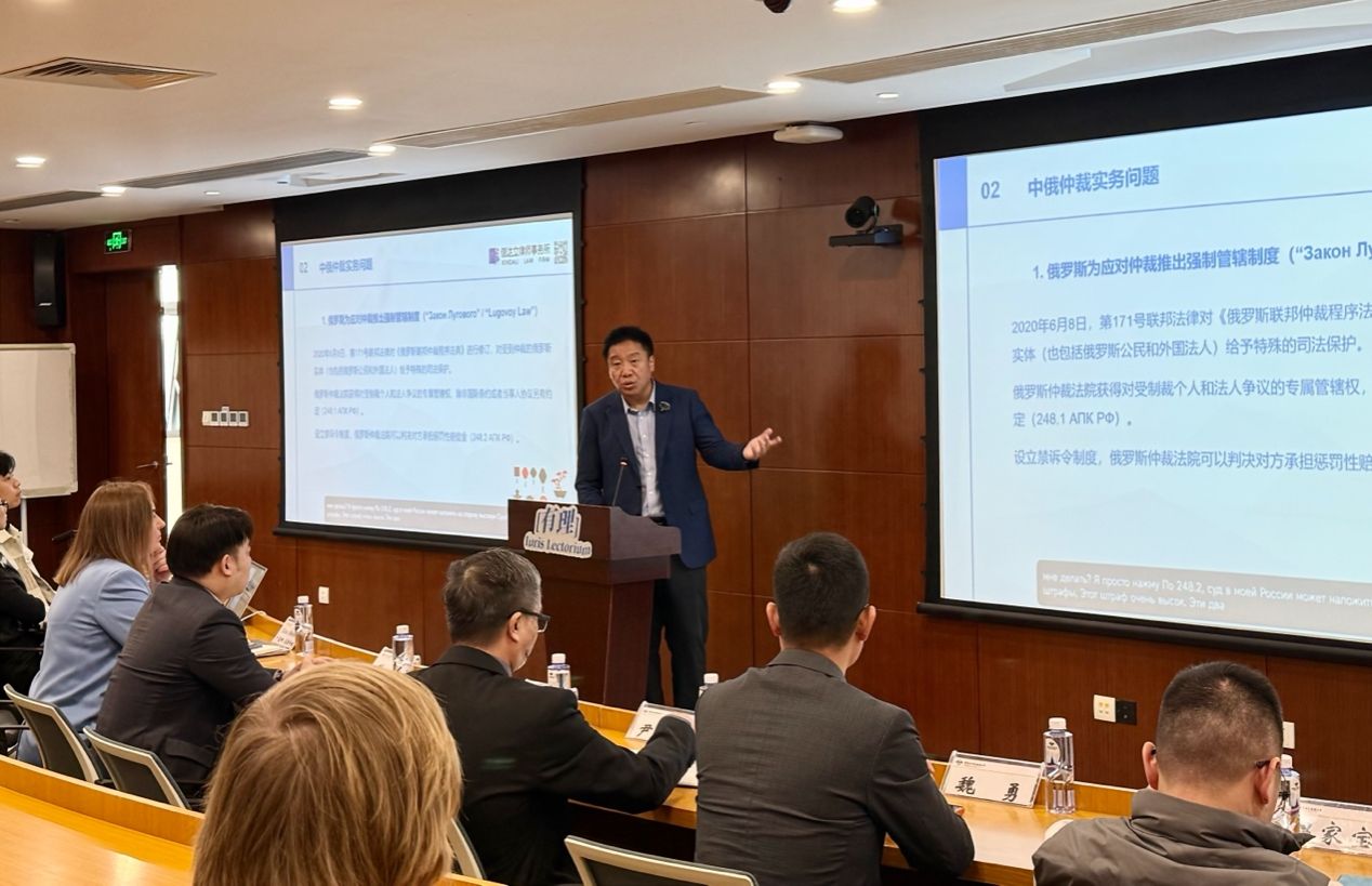 在讲座的核心内容部分,周广俊律师以实务案例与制度沿革为线索,系统解析了俄罗斯仲裁制度从“高度自由化”走向“强监管——牌照化”的改革路径:早期俄罗斯仲裁机构设立门槛较低,曾出现大量“口袋仲裁机构”等乱象,并引发虚假仲裁、逃债逃税、利益冲突等问题。2013年前后,俄罗斯开始推动仲裁制度改革,并在2016年前后形成以许可(牌照)与审查为核心的准入机制,未获许可的机构原则上不得作为合格的常设仲裁机构开展仲裁业务;同时对临时仲裁(ad hoc)在特定类型争议中的适用范围也进行了限制。周广俊律师据此提出,从制度治理角度该改革旨在提升仲裁秩序与可控性,但从涉外交易与仲裁生态角度,也可能带来市场竞争不足、当事人自治受限、跨境争议解决渠道收窄等连带影响。