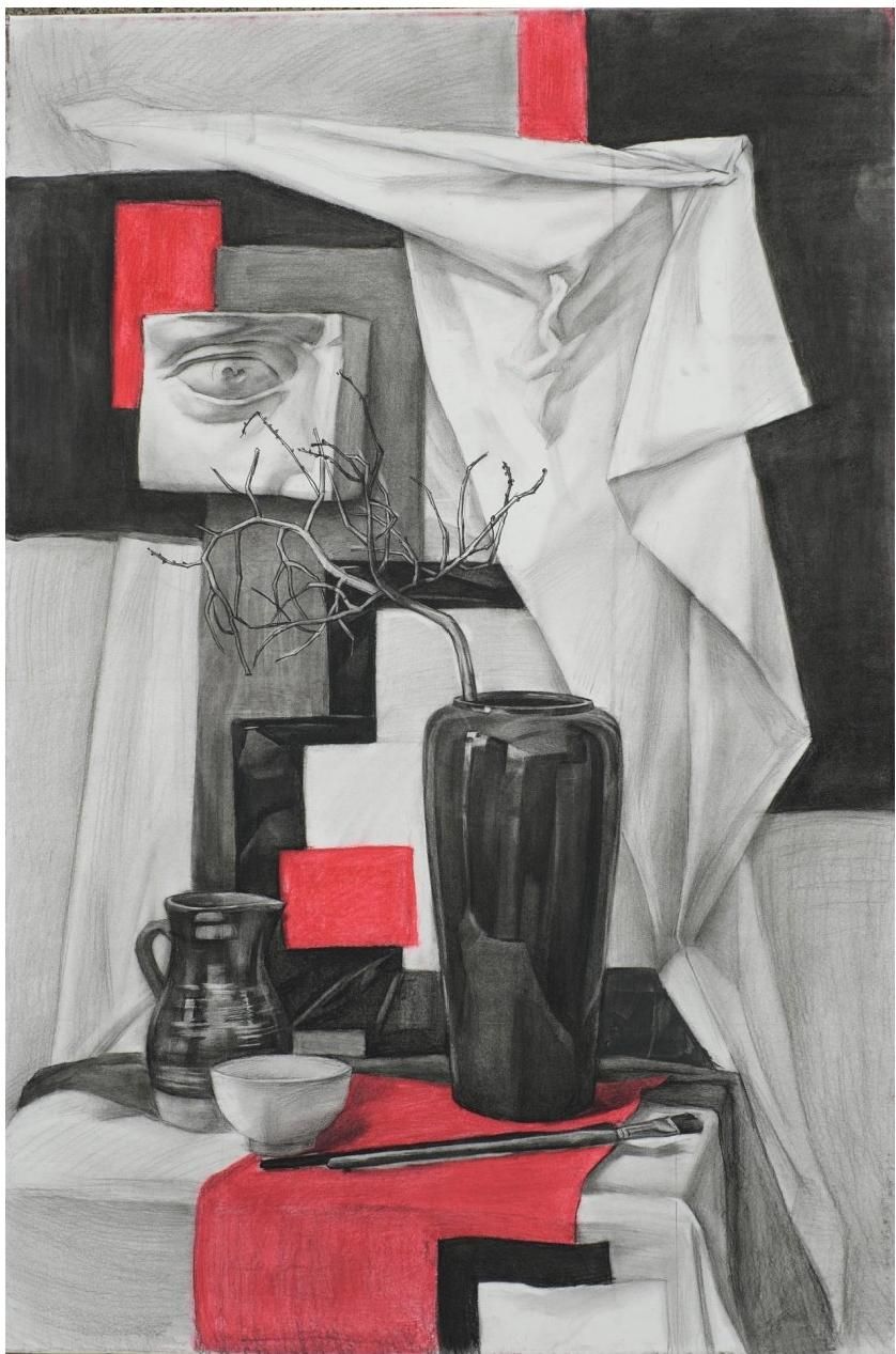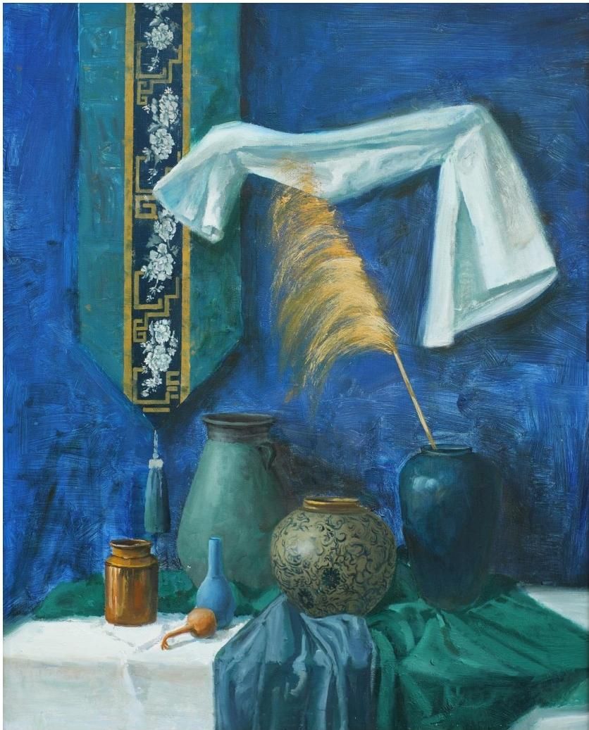 展览作品涵盖多类型艺术创作。墨韵书香中,可见传统笔法的承袭与心性流露;油彩画布上,洋溢着同学们对形式与色彩的激情探索;素描表达间,则记录了同学们观察与造型的成长足迹。师生作品同堂展出,清晰勾勒出教与学互动的完整轨迹,体现了从基础到个性的艺术培养路径。