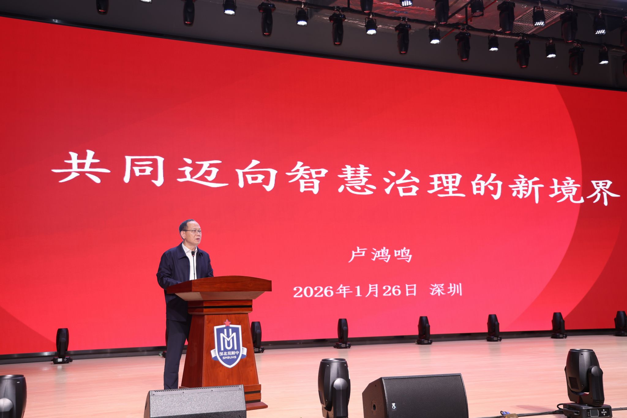 最后,基础教育集团总顾问卢鸿鸣作总结报告。他以《共同迈向智慧治理的新境界》为题,对集团2025年下半年工作进行了总结,对2026年重点工作做了部署,就学校智慧治理作学术报告。他表示,2026年集团将锚定“办师生幸福受人尊敬的高品质学校”目标,深化“融合、赋能、提质”战略主题,开创新格局、展现新作为。他分别从何为智慧治理、何谓“人的智慧”、何以成就智慧等三大方面诠释“人的智慧”在学校治理中的核心地位、鲜明特质与生成路径。他指出,技术智慧是现代治理的底座与引擎,人的智慧是学校治理的灵魂与核心,技术智慧与人的智慧是辩证统一、共生共荣的有机整体。他认为,“人的智慧”是学校治理中领导力的核心特征,真正具备高超“人的智慧”的管理者应注重价值引领、塑造共同愿景,践行分布式领导、为每个人赋能激活,战略上登高望远、战术上细致入微,善于换位思考、与师生深度共情,秉持刚柔并济,懂得“灰度管理”。他强调,管理干部思维体系的建构与修炼要坚守价值思维、锚定育人初心,要锤炼“系统思维”、实现统筹兼顾,要深耕“关系思维”、凝聚发展合力,要培育“设计思维”,聚焦师生体验,要坚持“反思思维”,推动持续精进。