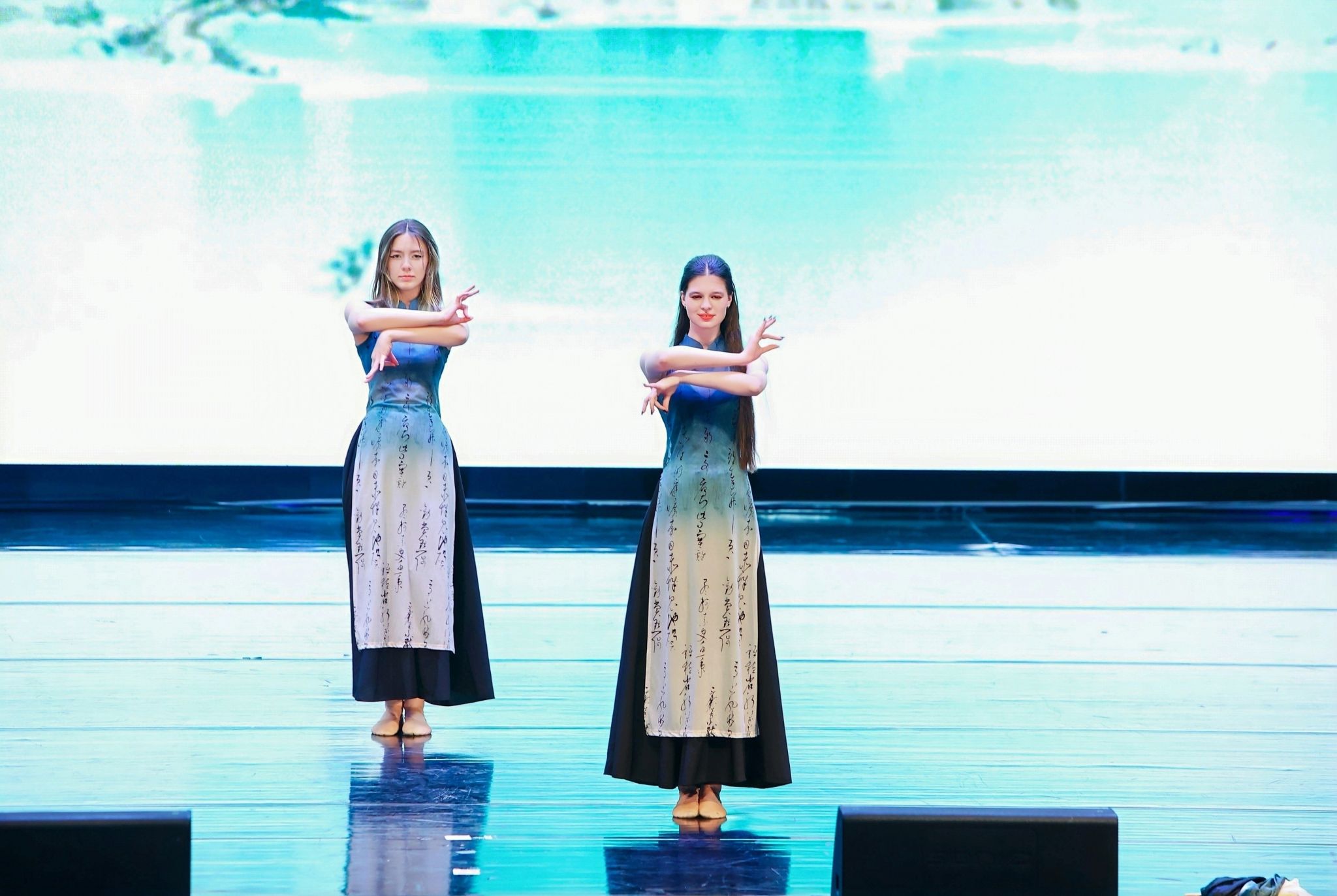 歌舞类节目同样精彩纷呈。中俄学生演绎的钢琴小号合奏《海阔天空》,以经典旋律致敬自由与理想。舞蹈《云缘》《一池月莲梦》《雨下一整晚》用柔美舒展的肢体语言,将中国古典美学的清雅与梦幻呈现得淋漓尽致。国际学生合唱邓丽君经典曲目《在水一方》,并以深沉悠远的嗓音唱出《贝加尔湖畔》的空灵意境。独唱《如愿》则以温暖而富有力量的歌声致敬时代与梦想,歌声落下,掌声经久不息。