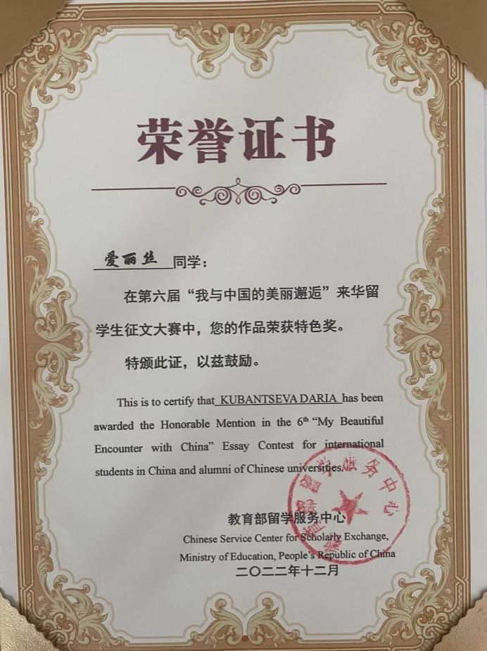“学习一门新语言的挑战不仅在于语法和词汇,更在于建立表达的自信。”这是蒋梦晗在教学中最深的感悟之一。由教育部留学服务中心主办的《我与中国的美丽邂逅》征文大赛,是全国最具影响力的来华留学生赛事之一,蒋梦晗主动承担辅导任务,全力帮助学生挖掘潜力、展现自我。在辅导一名2019级的国际学生时,她注意到对方充满潜力,但却因害怕“写错”“写不好”而屡屡退缩。为帮学生克服胆怯,她与学生一起探讨选题、打磨细节,逐字逐句地修改文稿,同时持续不断地给予鼓励与引导,帮助学生建立自信。最终,该学生用生动的笔触,讲述了她在中国的动人故事,成功斩获比赛“特色奖”。在蒋梦晗看来,学生收获的远不止一个奖项,更是敢于用中文深入思考与表达的宝贵自信。