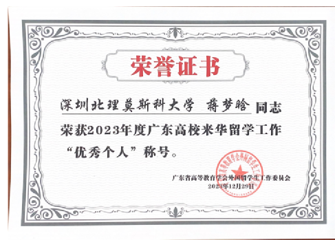 2023年广东高校来华留学工作“优秀个人”获奖证书