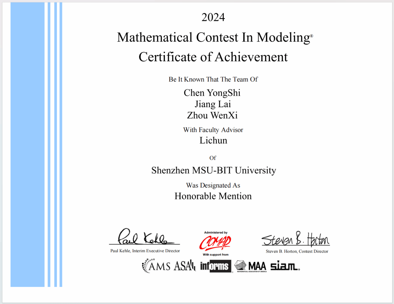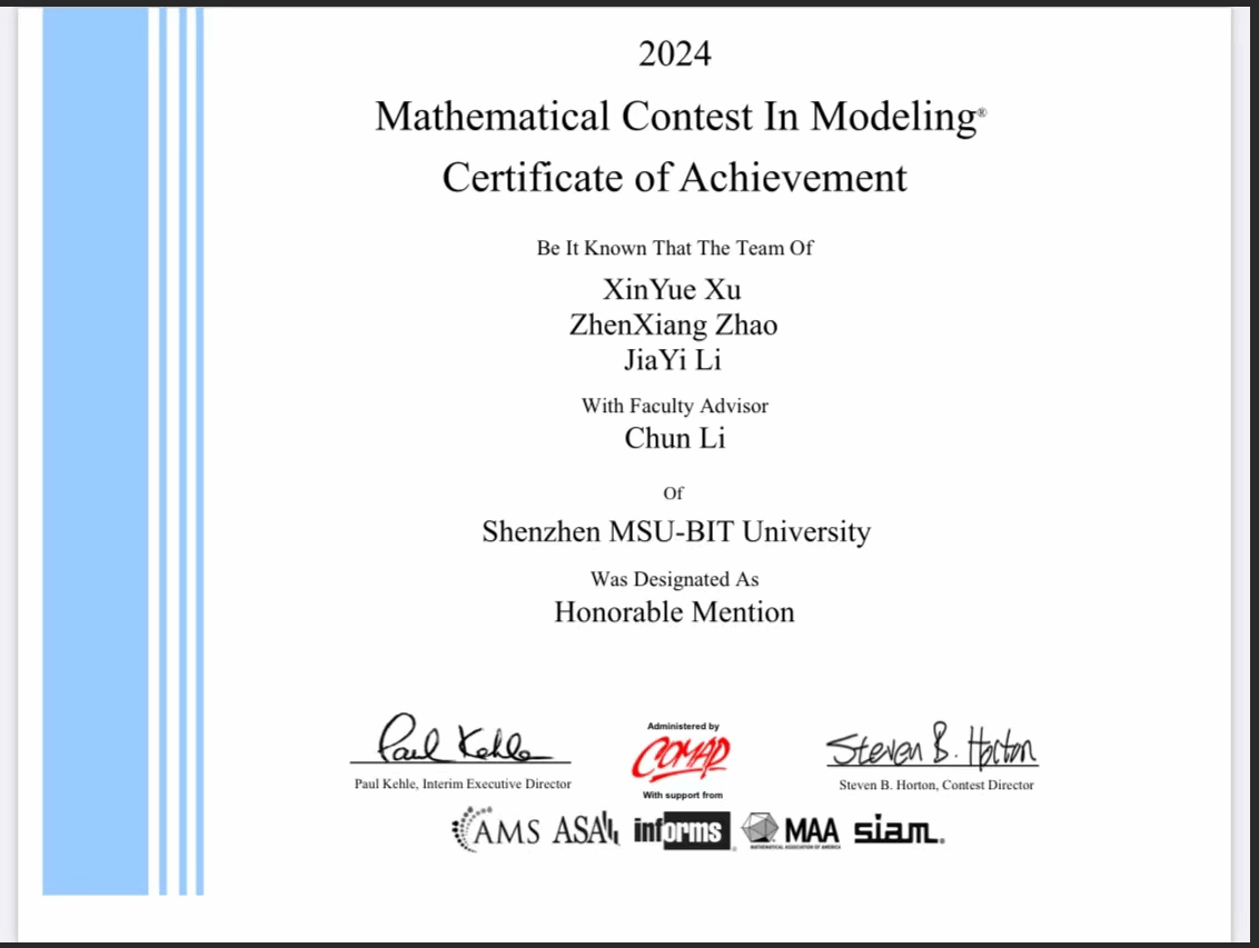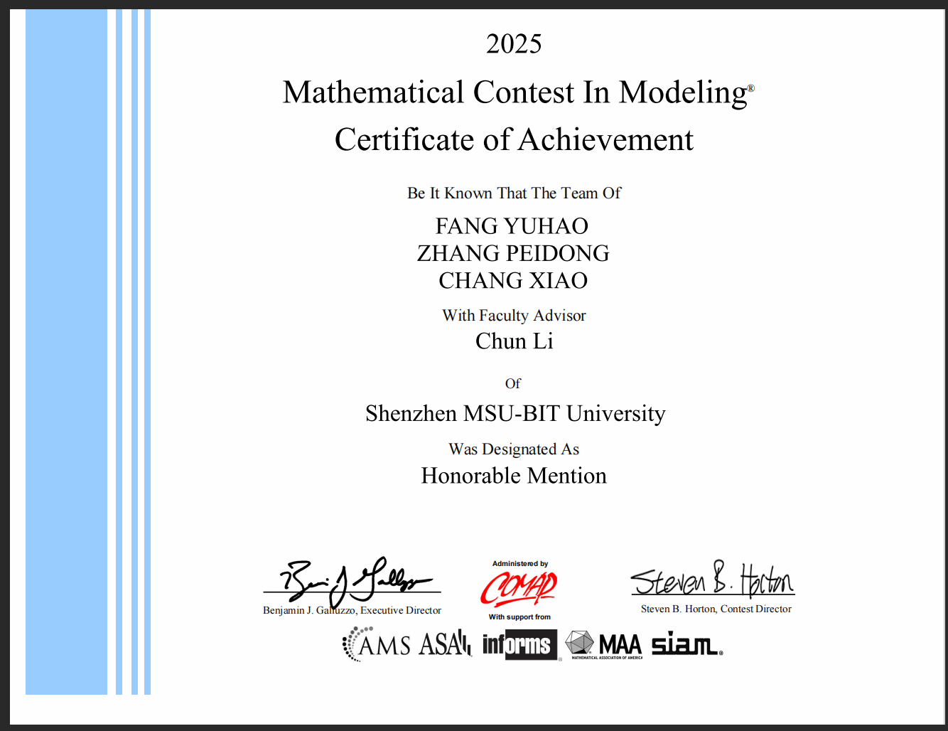 在人才培养方面,李春搭建了“导师—助教—朋辈”三级协同机制,通过建模训练营、论文共读与开源复现等方式,系统提升学生的创新实践能力。近三年来,他指导的学生在美国大学生数学建模竞赛中荣获4项H奖,在全国大学生数学建模竞赛中获得省级一等奖1项、三等奖2项,在亚太地区大学生数学建模竞赛中取得二等奖1项,在“挑战杯”广东大学生课外学术科技作品竞赛中获得三等奖。
