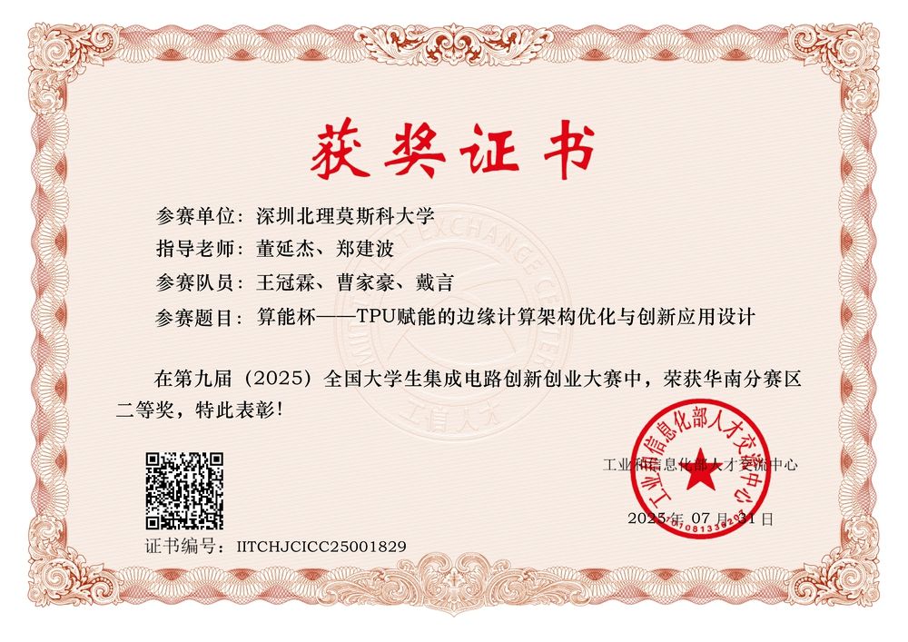 “以赛促学、以赛育人”是郑建波培养学生工程实践能力的重要路径。他积极组织学生团队参与全国性学科竞赛,在备赛过程中,他负责技术方案审定与资源协调,引导学生自主探索解决方案,培养学生的独立思考与团队协作能力。在他科学系统的指导下,学生团队屡创佳绩,先后荣获:全国大学生物联网设计竞赛全国一等奖一项、华东赛区一等奖一项;全国大学生集成电路创新创业大赛华南赛区二等奖、三等奖各一项;全国大学生“挑战杯”创业计划竞赛广东省三等奖。这些奖项不仅是学生工程实践能力的集中体现,更彰显了郑建波在竞赛指导中“精准把控、用心赋能”的育人智慧。