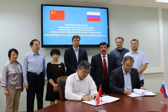 赵平校长代表深圳北理莫斯科大学,谢尔盖・卡纳夫斯基执行秘书代表实业家委员会秘书处,共同署了备忘录。