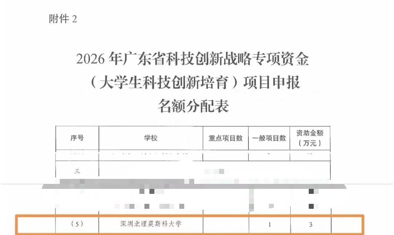 根据共青团广东省委《关于2026年广东省科技创新战略专项资金(大学生科技创新培育)分配方案和绩效目标的公示》,我校今年共计1个立项名额。详细分配情况如下: