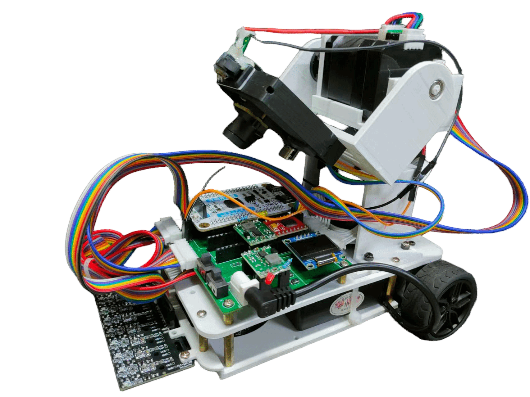 由工程系教师沈劲鹏、李一可指导的参赛小组(工程系本科生陈炜明、郭梁晨和周寒初),设计了一款“简易自行瞄准装置”。该作品基于 TI MSPM0系列MCU,通过模块化硬件与多算法融合,能够满足不同场景下的精准瞄准与循迹要求。在瞄准实现上,采用双轴步进闭环云台,融合图像识别与改进型霍夫圆检测算法,能够快速锁定靶心及红色圆弧特征,同时结合姿态信息实现激光方向的动态调节,大幅提升瞄准精度;在寻迹方面,通过灰度寻迹传感器 + PID 控制算法的有机结合,配合编码测速反馈实现闭环控制,确保了轨迹跟踪的精准性。