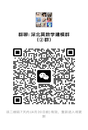 请计划参加2026年全国大学生数学建模竞赛或者对数学建模感兴趣的同学加入下面的深圳北理莫斯科大学数学建模竞赛2群(数学建模1群已接近微信群上限500人)。通知上待定腾讯会议号的将在数学建模1群和2群里通知。