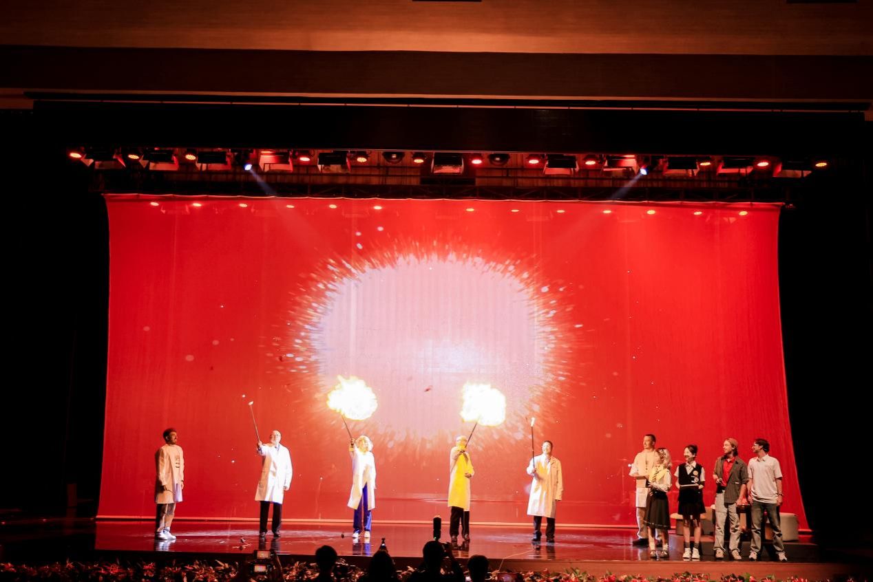 随后,启动仪式举行了“你的量子宇宙”舞台剧表演。舞台剧以四名表演者的中俄双语对话为核心,巧妙结合深北莫校园图书馆等真实学习场景,用通俗化表达拆解量子物理关键知识;同时创新性融入“多重宇宙”设定,通过“误入平行宇宙”的剧情冲突,让抽象的科学概念更具趣味性。表演过程中还穿插杂技、舞蹈、乐队表演、歌曲等多类艺术节目,将抽象量子概念与具象艺术表达深度融合,赢得了现场观众的热烈掌声与赞叹。