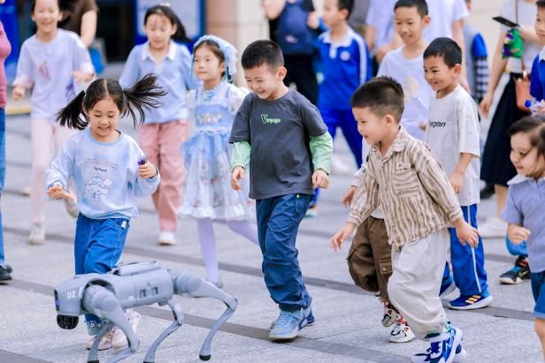 在“化学厨房”体验区,工作人员提前用新鲜红甘蓝榨取天然指示剂。市民只需将小苏打、柠檬酸等常见家用物质依次加入菜汁中,就能亲眼见证溶液从淡粉色变为亮绿色、再转为深紫色的“色彩魔法”,直观感受化学变化的奇妙;“机器人”大师班处,一只灵动的机器狗成为全场焦点,与小朋友们“握手”互动,凭借灵活的动作与拟人化表现,展现智能科技的灵动,引得孩子们欢笑追逐。