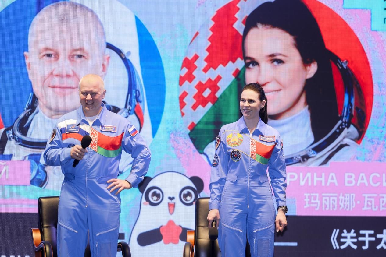 当夜幕降临,宇航员奥列格・诺维茨基、玛丽娜・瓦西列夫斯卡娅身着标志性蓝色航天服亮相湖滨主舞台,现场瞬间响起热烈掌声与欢呼声。“上太空是什么感受?”“在太空怎么睡觉?”“怎样才能成为宇航员,有什么标准?”……台下观众不分年龄纷纷举手提问,将现场气氛一次次推向高潮。宇航员们生动幽默的解答,瞬间拉近了航天科学与公众的距离,航天知识也在轻松的互动中悄然传递。分享结束后,观众们怀着期待与崇拜的心情,有序排队等候两位航天员签名留念。