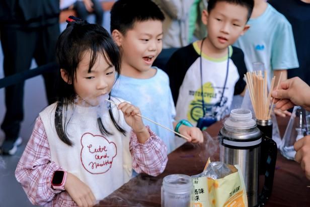 此外,“生物发光”体验区的荧光水罐、“分离DNA”展台的水果絮状物、“当美食遇上科学”体验区用液氮制作的无冰渣冰淇淋……每一个互动项目都让参与者直呼“有意思”。不少家长感慨:“这类动手又动脑的科普活动太精彩了,比去游乐园还让人着迷!孩子全程舍不得离开,回家后还一直在念叨今天玩过的科学实验。”