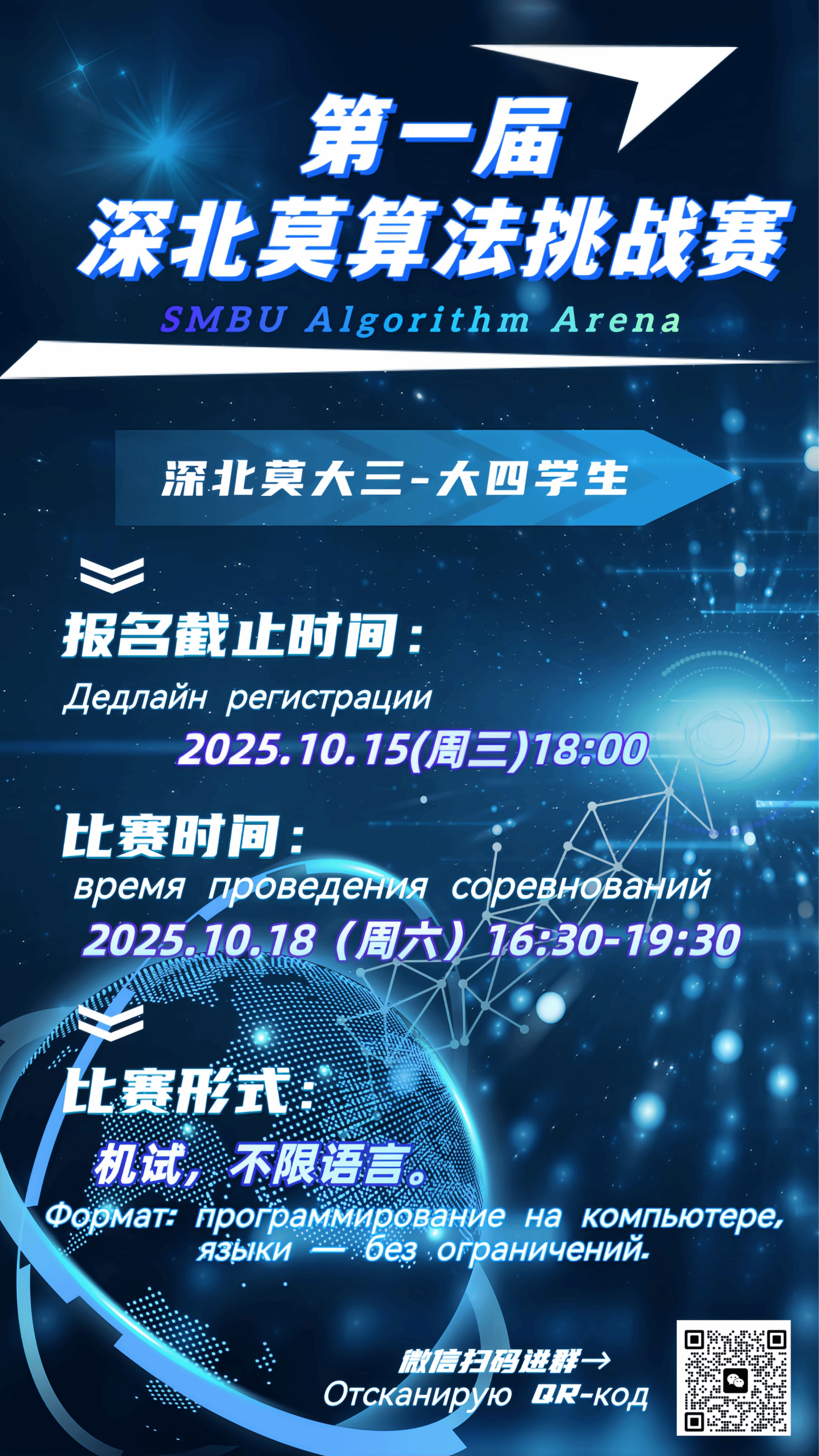 简介:SMBU算法挑战赛由计算数学与控制系主办,面向大三、大四学生。赛事旨在为广大同学提供实战竞技机会,提升算法应用与问题解决能力,助力学子在实践中锤炼专业技能。